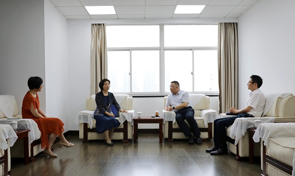 党委书记朱斌、副书记唐华与竺鸰一行进行了亲切交谈。校党委委员、组织部长施静龙陪同走访。