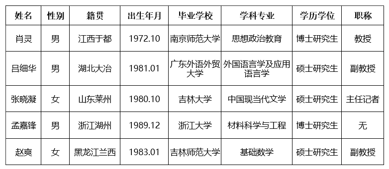 通过公开发布招聘计划、遴选简历、面试、政审、人才工作领导小组会议、校长办公会议等程序,经体检合格后确定下列人员为我单位拟聘用人员,并公示如下: