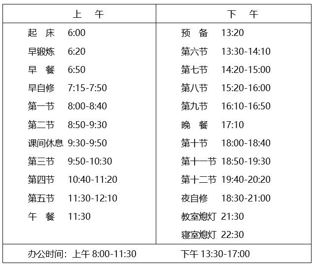 根据学校作息时间安排,自10月8日(星期五)开始实行冬季作息时间表,请各部门、学院做好通知工作,确保作息时间调整后学校各项工作正常有序开展。