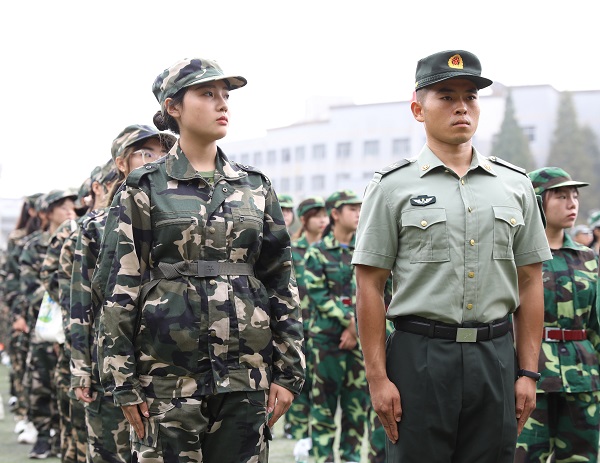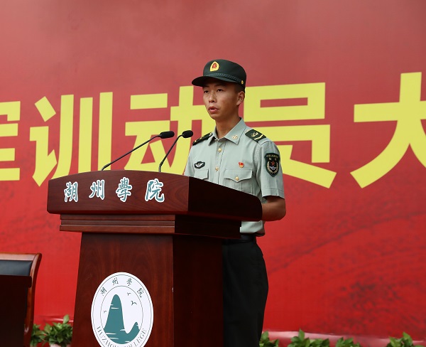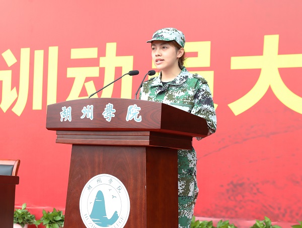 来自经济管理学院的求晶晶代表全体参训同学郑重承诺:以军人的身份严格要求自己,一切行动听从指挥,遵纪守法,团结互助,培养吃苦耐劳的意志和品质,以斗志昂扬的姿态在校园留下奋斗的足迹。