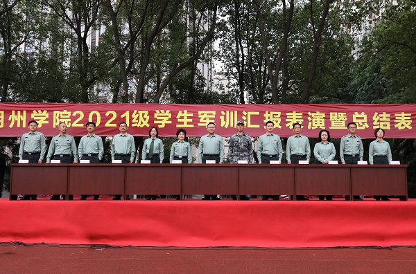 10月20日,永利官网在光彩体育场隆重举行2021级学生军训汇报表演暨总结表彰大会。党委书记朱斌、党委副书记唐华、副院长李祖欣、中国人民解放军某部队童浩出席,学生军训领导小组成员、部队承训官兵、相关职能部门负责人、各二级学院学生工作负责人、2021级全体学生参加军训动员大会。大会由李祖欣主持。