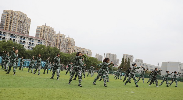 四营女子方阵和五营男子方阵的同学分别表演了匕首操和军体拳。