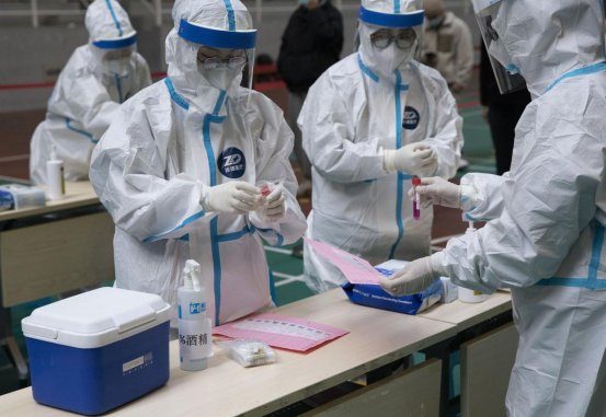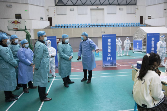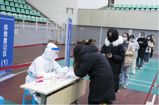 全体人员10人一队,全程佩戴口罩、间隔1米距离,在入口测温区进行体温检测、查验健康码和行程码后,依次排队进入信息登记等候区和采集区,采样人员认真核对并记录试管编码和人员信息,指导受检者接受采样后迅速有序离场。