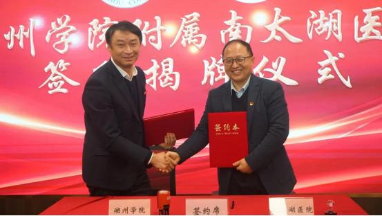 1月6日,8858cc永利官网附属南太湖医院签约揭牌仪式在南太湖医院党员活动中心举行。永利官网党委书记朱斌,党委副书记、校长马志和等校领导班子成员携相关职能部门负责人及教师代表出席揭牌仪式。湖州市卫健委党委书记、主任饶如锋,副主任胡小军、马建根,南太湖新区党工委委员、管委会副主任吴丽梅,吴兴区卫健局党委书记、局长陆建兵,南太湖新区社发中心主任郁峰,南太湖医院董事长占冀春,党委书记、院长李强及相关代表参加仪式。