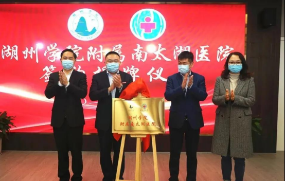校党委书记朱斌,湖州市卫健委党委书记、主任饶如锋,南太湖新区党工委委员、管委会副主任吴丽梅和南太湖医院董事长占冀春共同揭牌。