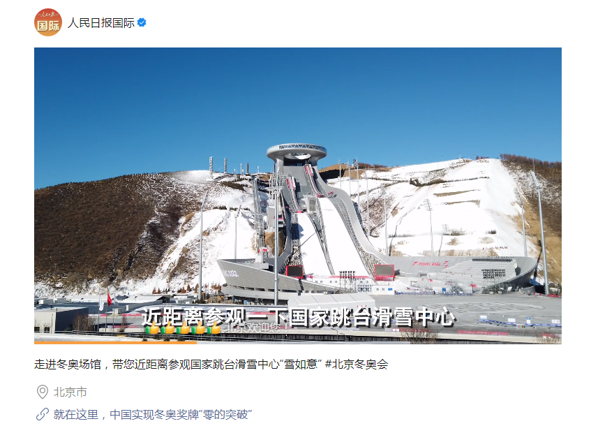 2022年1月30日,人民日报国际以《走进冬奥场馆,带您近距离参观国家跳台滑雪中心“雪如意”》为题报道永利官网张涛老师作为裁判员参加北京冬奥会。