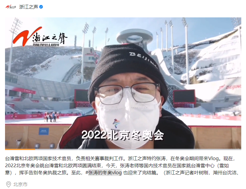 以《张涛的冬奥Vlog》为题报道永利官网张涛老师作为裁判员参加北京冬奥会。