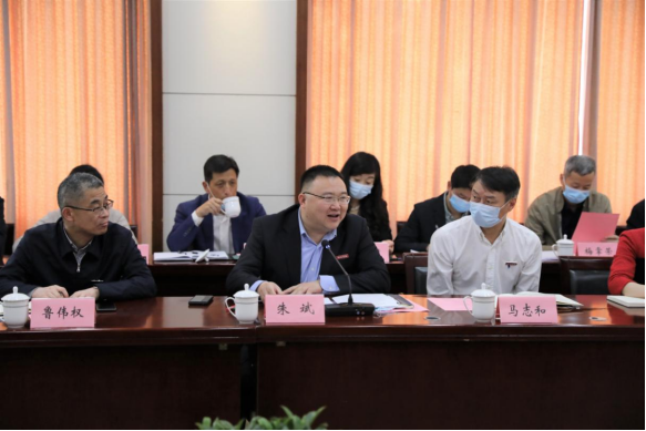 朱斌简要介绍了学校基本情况,并围绕明确办学定位、服务地方经济社会发展、师资队伍建设、二级学院设置调整和新校园建设等方面汇报了2022年学校重点工作。