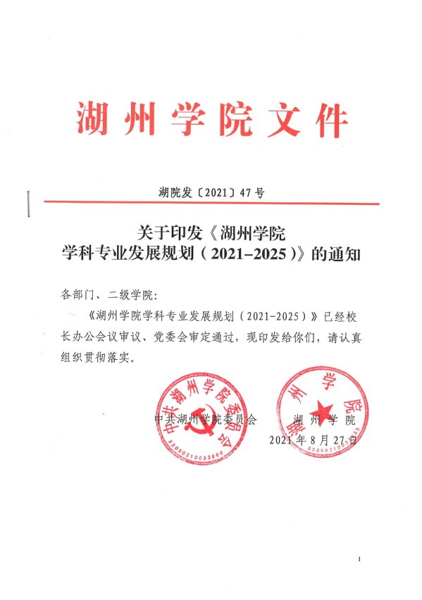 2021年学校出台《8858cc永利官网学科专业发展规划(2021-2025)》,为未来五年加快学科专业布局、形成具有自身特色的学科专业结构,服务湖州、浙江乃至长三角地区经济社会发展指明了方向。