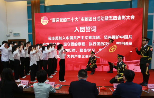 与会领导分别为市级、校级先进团组织和个人颁奖。沉浸式主题团日活动中,庄严的入团仪式展现了湖院青年积极向党靠拢的决心;诗朗诵《奋斗吧,青年!》体现了追求真理、燃烧理想、拼搏创新的青春之姿;“讲述青春故事”展示了湖院学子的责任与担当;大合唱《永远跟党走》表达了湖院人听党话、跟党走,忠于祖国和人民,踔厉奋发的信心和决心。