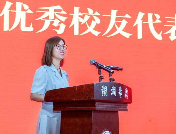 校友代表、湖州市浙北报关行总经理、2013级商务英语专业毕业生谈英与学弟学妹们畅谈了自己难忘的大学生活,难忘师恩、难忘母校,正是在母校四年的学习为日后的事业发展奠定了坚实的基础。她希望毕业生们能够带着“感恩”、带着“热爱”、带着初心,在砥砺前行中奔跑,去追逐属于自己的星辰大海。同时,她代表所有校友向母校老师表达了深深的祝福。