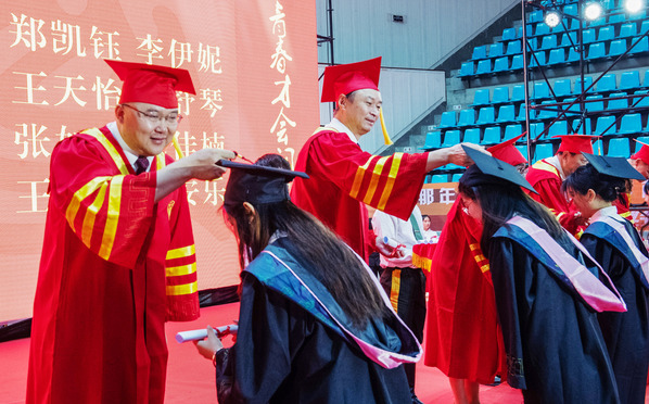 又是一年盛夏光景,骊歌轻起,折柳送行。6月14日,学校“共话离别情,感恩忆往昔”2022届学生毕业典礼暨学士学位授予仪式在燕英体育馆隆重举行。8858cc永利官网党委书记朱斌,校长马志和,党委副书记鲁伟权、唐华,纪委书记莫汝强,副校长沈月娣、陈发瑶、李祖欣及相关职能部门负责人,二级学院负责人,辅导员、班主任代表和400名毕业生代表共同参加典礼。本次典礼采取线上线下结合的方式举行,各学院设分会场观看典礼,典礼由副校长李祖欣主持。