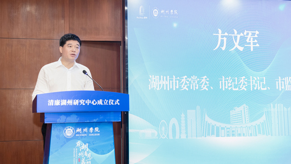 方文军在讲话中强调,成立清廉湖州研究中心是贯彻落实省第十五次党代会关于打造新时代党建高地和清廉建设高地决策部署的创新举措,对做好清廉湖州建设巩固、拓展、深化的文章具有重要意义。希望研究中心成为清廉建设的理论高地,加快对清廉湖州建设有关经验做法的总结提炼,将已经取得的一系列实践成果、制度成果转化提升为市域清廉建设的理论框架、规范标准,为清廉浙江理论研究提供湖州经验、打造湖州样板;成为服务决策的专家智库,以课题研究为载体、以推动治理为目标,积极为各清廉单元建设主体提供咨询服务、提出意见建议,不断提升清廉湖州建设的理论高度和发展能级;成为对外展示的重要窗口,主动展现清廉湖州建设的成色,形成博采众长、兼容并蓄、开放融合的理论体系,为全面打响与“在湖州看见美丽中国”定位相得益彰、交相辉映的清廉品牌提供强大理论支撑。
