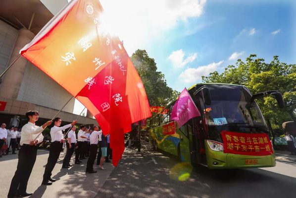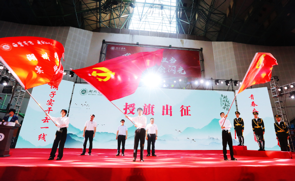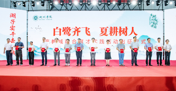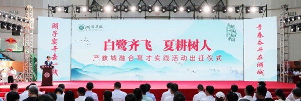 7月1日,学校“白鹭齐飞 夏耕树人”产教城融合育才实践活动出征仪式在燕英体育馆隆重举行。湖州市委常委、组织部部长、市委人才办主任徐仲仪,市委人才办副主任、市人力社保局副局长、团市委副书记、县区委常委组织部部长、副县区长,永利官网党委书记朱斌、校长马志和等学校党政领导班子出席,头部企业代表、实践基地代表、导师代表和学校各职能部门负责人、二级学院师生代表参加出征仪式。仪式由党委副书记唐华主持。