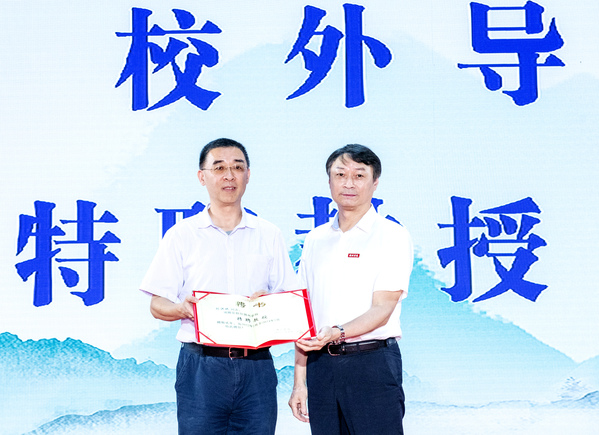 校长马志和为浙江亚瑟医药有限公司董事长、国家引才计划创业项目专家刘洪斌博士颁发特聘教授聘书。