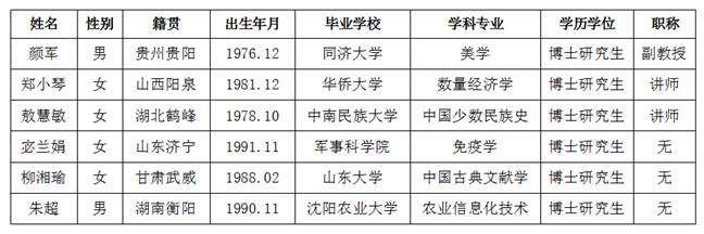 通过公开发布招聘计划、遴选简历、面试、政审、人才工作领导小组会议、校长办公会议等程序,经体检合格后确定下列人员为我单位拟聘用人员,并公示如下: