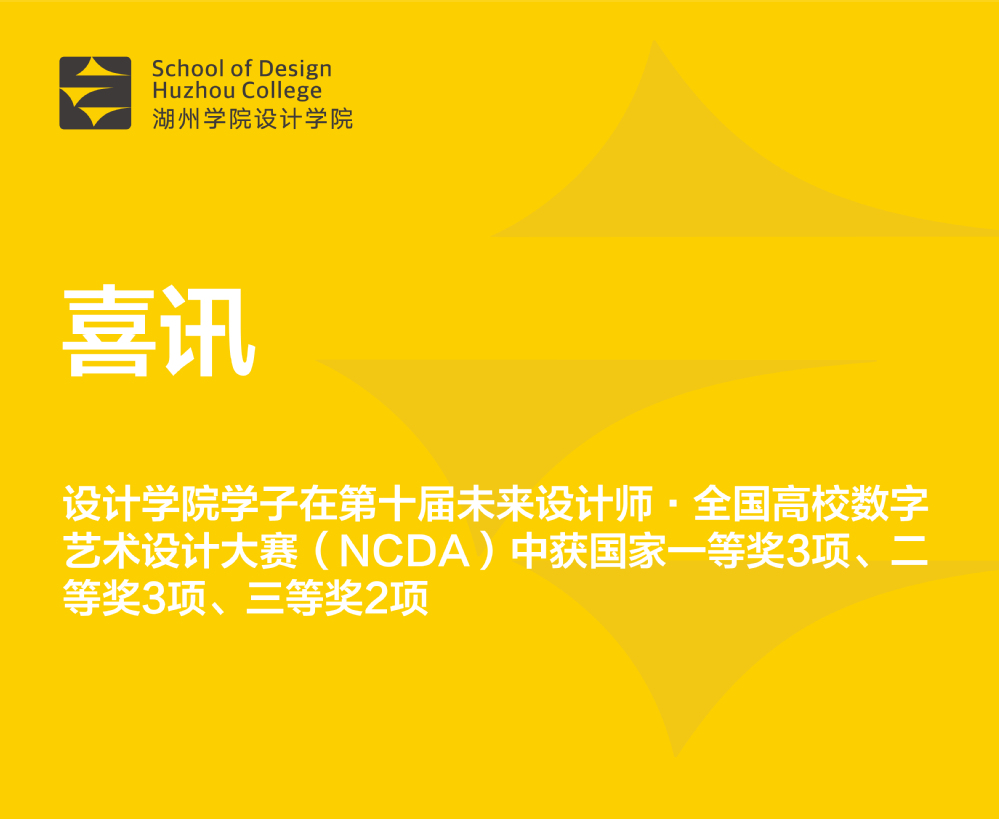日前,从第十届未来设计师·全国高校数字艺术设计大赛(NCDA)组委会传来喜讯,设计学院学子在国赛中取得优异成绩,喜获一等奖3项、二等奖3项、三等奖2项。