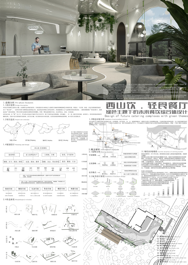 《西山饮——绿色主题下的未来餐饮综合体设计》作者:王若冰,程嘉南;指导教师:李文莲,毛攀云