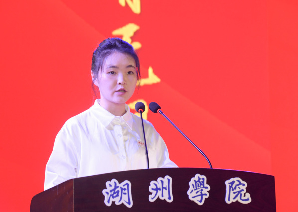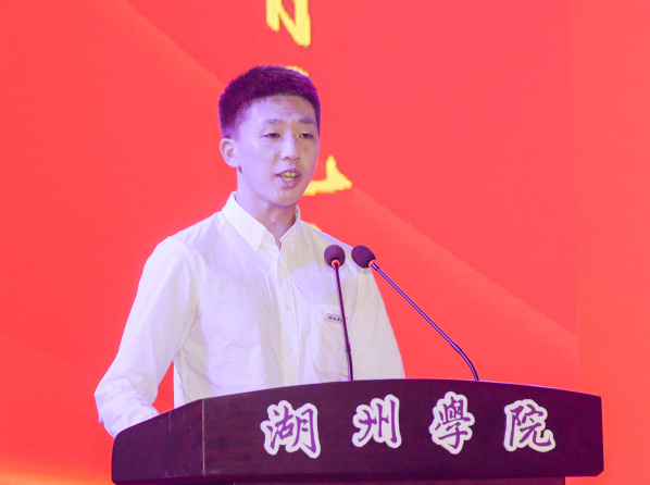 新生代表、电子信息学院电子信息工程专业廉晟表示初来湖州就已经爱上了这座城市,并感受到了湖院大家庭满满的温情,作为新时代的大学生应坚持初心、不负韶华,脚踏实地、努力奋斗,心怀家国、胸怀天下。