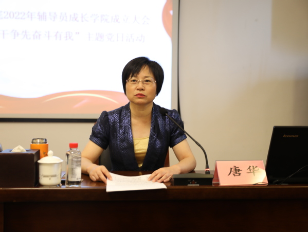 校党委副书记唐华作辅导员成长学院成立大会讲话。她以应用型高校发展改革及新时代学生的新特点对辅导员工作提出了新要求,深度剖析新形势下辅导员工作的政治引导、业务指导、价值引领、主动作为四维度的恐慌及恐慌产生的原因。她寄语辅导员们要在加强思想引导和心理辅导上下功夫,要在提升工作激励和指导力度上下功夫,要在规范工作流程和提供保障上下功夫,要在提升工作爱商和以情感人上下功夫,做好永利官网大学生思想政治教育工作,落实立德树人根本任务,为学校持续建设高水平应用型大学建设贡献力量。
