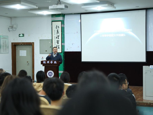 何谓大学?朱斌首先向同学们提出了这样的疑问。同学们带着疑问和思考把目光投向深邃的历史空间,来到中世纪探寻世界大学的源头。德英美三国学派对大学理念的说法各有千秋,而他强调,大学永远要把培养人放在第一位,培养学生是每个大学的首要目标。中国大学的发展之路起源于1890年代,“上法三代,旁采泰西”,传统的学术精神、书院精神是宝贵财富。