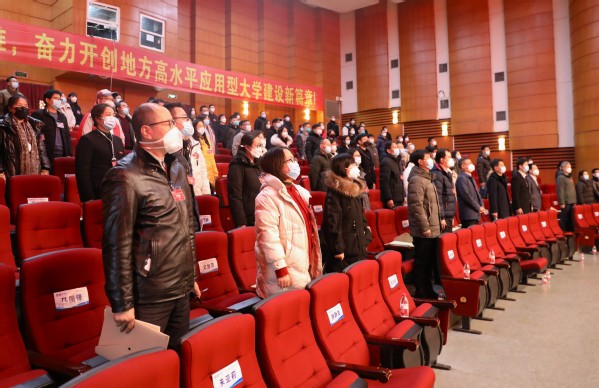 会上,校长马志和作了题为《踔厉奋发 攻坚克难 奋力开创地方高水平应用型大学建设新篇章》的工作报告。他表示,2022年是党的二十大胜利召开之年,是全面实施“十四五”规划承上启下之年,也是学校抢抓机遇、乘势而上、实现高质量赶超发展的关键一年。在上级党委政府和学校党委的坚强领导下,8858cc永利官网领导班子团结依靠全校广大教职员工,坚守为党育人、为国育才初心使命,以特色鲜明的高水平应用型大学为建设目标,以服务浙江“两个先行”“六个新湖州”为办学使命,以“在湖州看见美丽中国”实干争先主题实践为总抓手,突出内涵式发展主题,统筹疫情防控和教育教学工作,加快推进新校园建设,努力办好人民满意的教育。他指出,接下来要以习近平新时代中国特色社会主义思想为指导,把学习贯彻党的二十大精神作为贯穿2023年学校工作的主线,学校将立足新的历史方位,实施“三步走”发展战略:力争到2025年,建成理工学科优势突出的应用型本科大学;力争到2035年,建成理工学科特色鲜明的高水平应用型大学;力争到2050年,全面建成全国知名、特色鲜明的高水平应用型大学。