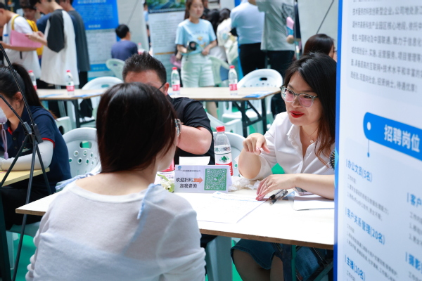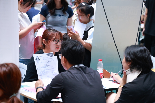 招聘会现场格外热闹,唐华作为七号室友邀请“学生室友”和企业代表进行座谈会,为“学生室友”进行职业规划并点对点为大家推荐企业。招聘会上,经济管理学院电子商务张同学拿着打印好的简历投递面试了多个企业。她告诉记者,线下招聘会能更加详细地了解到各个公司的情况,也让同学们看到更多可能性。