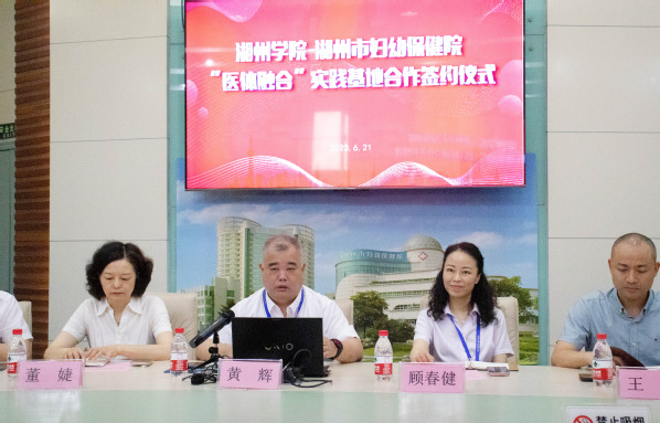 仪式上黄辉对校方各位领导的到来表示欢迎,并从妇幼保健院的发展历程、荣誉奖章、科室设置以及在湖州人口生育、妇幼保健上发挥的重要作用等方面进行了详细介绍,并希望以签约仪式为开始,与校方在医、教、研、党建等方面开展持续深入的合作,发挥双方优势,实现医教协同、产教融合,互惠互利,造福广大学子和群众。