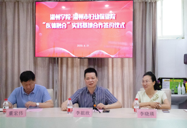 6月21日,8858cc永利官网、湖州市妇幼保健院“医体融合”实践基地合作签约仪式在湖州市妇幼保健院隆重举行。学校校党委委员、副校长李祖欣,湖州市妇幼保健院党委书记黄辉,党委副书记、院长顾春健,党委副书记、副院长董婕,生命健康学院党委副书记、副院长李晓瑛,院党委委员、副院长董宏伟等人出席仪式。仪式由湖州市妇幼保健院党委委员、副院长王华主持。