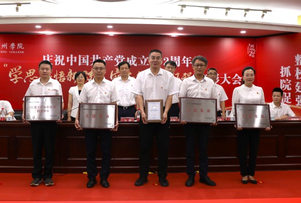 校党委副书记唐华宣读表彰文件。大会对学校2022年度校级基层党建工作先进集体、校级党建工作标杆院系、样板支部创建单位、“双带头人”教师党支部书记工作室创建单位、2023年“最受师生喜爱的书记”、2023年省级、校级思政微课比赛、2023年省级、市级优秀党建联建案例获得者进行了表彰。相关获奖代表分别上台交流发言。