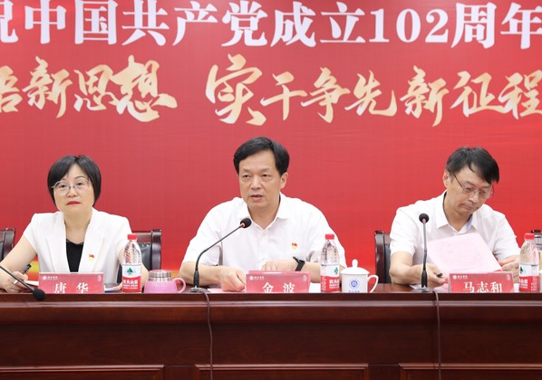 党委书记金波代表学校党委向受表彰的集体和教师党员表示祝贺,对各级党组织和辛勤工作在各条战线上的广大师生党员致以节日的问候,对大家为党的教育事业付出的辛勤努力表示衷心的感谢和崇高的敬意。金波指出,今年是学习贯彻党的二十大精神开局之年,是扎实推进学习贯彻习近平新时代中国特色社会主义思想主题教育之年,学校上下要牢牢把握时代发展主旋律,省市发展新要求,不断深化“红色根脉强基”工程,抓院促系、整校建强,从政治建设再强化、基层基础再强化、融合发展再强化、全面从严治党再强化四个方面持续用力、久久为功,不断开拓学校党的建设新局面。