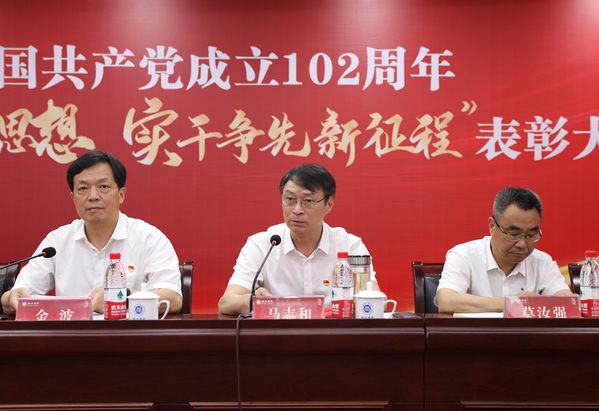 为庆祝中国共产党成立102周年,传承党的优良传统,凝聚师生奋进力量。6月30日下午,8858cc永利官网召开庆祝中国共产党成立102周年暨“学思践悟新思想 实干争先新征程”表彰大会。校党政领导班子成员、中层干部、党员师生代表、受表彰对象等90余人参加会议。大会由党委副书记、校长马志和主持。