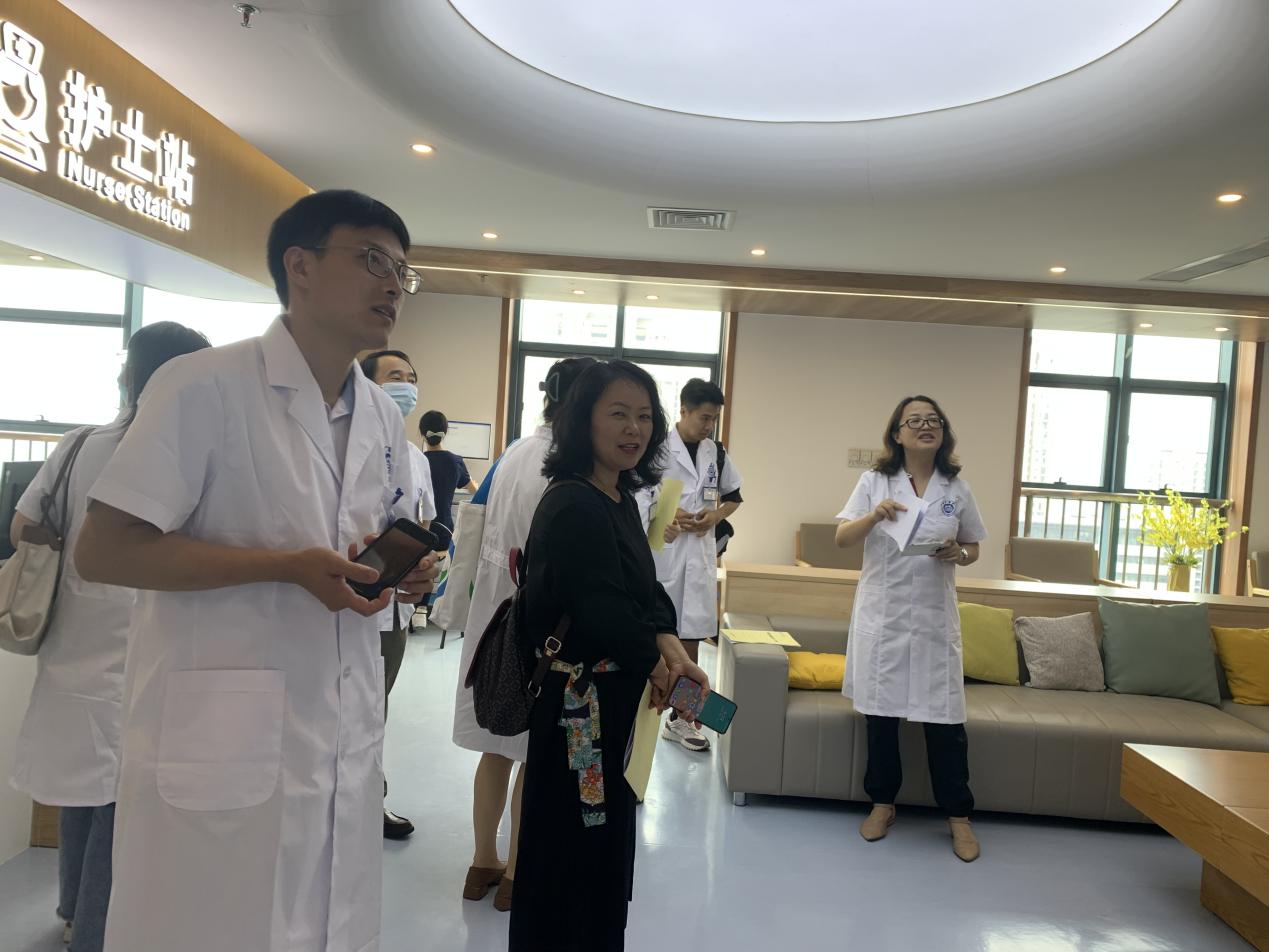 随后,学工部部长、副部长及辅导员们在杨科长带领下,参观了见习轮转科室。杨科长向辅导员们介绍了相关科室情况以及特色工作。学工部部长与医护人员进行了亲切交流,对医院持续深耕心理卫生领域表示赞叹,希望今后能在人才队伍建设、就医快速转诊等方面加强合作,携手推进湖州市社会心理体系建设,打造浙北心理健康工作新样板。
