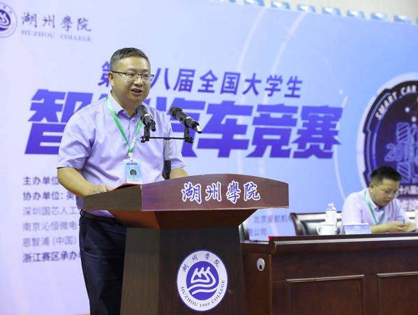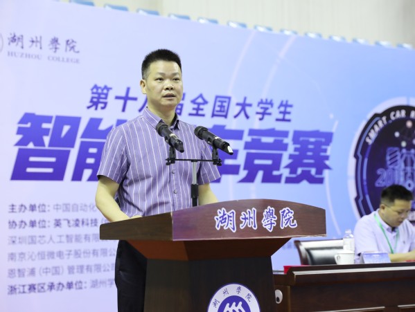 党委委员、副校长李祖欣教授在致辞中表示,这次选拔赛的成功举办,离不开全国和省两级组委会的大力支持。同时他向杭州电子科技大学竞赛团队和为本次竞赛付出辛勤劳动、做出贡献的各位专家评委、工作人员和全体志愿者致以诚挚的感谢。他表示,比赛精彩纷呈,所有参赛的同学们都彰显出新时代中国青年的青春活力,希望同学们不负时代,继续踊跃参与这项赛事,为国家在智能汽车领域的前进贡献力量,成为人工智能方向的舞者。