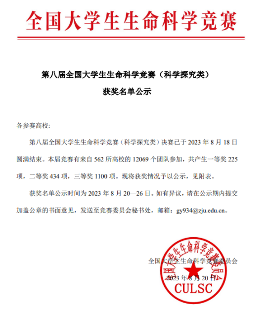 8月20日,第八届全国大学生生命科学竞赛(科学探究类)获奖名单公示,本届竞赛有来自 562 所高校的 12069 个团队参加,共产生一等奖 225 项,二等奖 434 项,三等奖 1100 项。生命健康学院刘骕骦博士、刘燕敏博士共同指导,林紫依、徐乐、李天龙、谭清蔚、何宏泰五位同学共同参与的项目《大豆GmPM31启动子参与高温高湿胁迫响应的功能分析》荣获全国三等奖,也是永利官网学子在该赛道首次获奖。