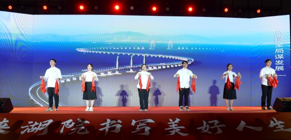 开学典礼结束后,全体师生们迎来了第二届西塞山论剑科技节开幕式暨迎新晚会。该晚会以中国原子能科学事业的创始人、两弹一星功勋奖章获得者、湖州人民的骄傲钱三强的故事为主线,分《晨光熹微》《吉光凤羽》《星光熠熠》三个篇章,为大家带来了《遇见》《天天向上》等多种多样的精彩节目,在给大家呈现一场视听盛宴的同时,还展现了永利官网学生躬身科研、强国有我的湖院学子风采。