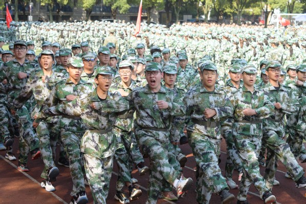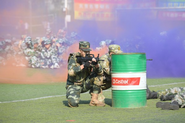 校党委书记金波宣布会操开始,校长马志和向承训部队赠送锦旗。7个营的学生连队沿着阅兵道依次经过观礼台。他们身着迷彩,器宇轩昂,目光如炬,以整齐划一的步伐、刚劲有力的摆臂和清脆嘹亮的口号,展示了湖院学子积极向上的精神风貌。各个营组建的女子方阵和男子方阵分别表演了刺杀操和格斗术。教官队伍表演了红蓝对抗演练。
