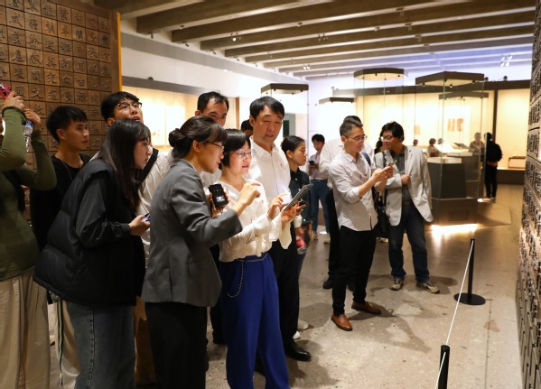 杭州国家版本馆又名“文润阁”,坐北朝南、依山立阁、绕山为廊,以宋代屏风为设计灵感,用碧色的龙泉青瓷装点,带着江南的温润如玉,传统与现代的对话、历史与建筑的融合,共同构筑了新的城市文化地标。在展区里一件件陈列的版本,都是文化的载体、文脉的印记,无不诉说着背后的中华历史文化和中国故事。漫步整个场馆,多媒体、数字交互等现代技术随处可见,沉浸式的体验让版本“活”了起来。大家一路参观、一路体验,认真地听、仔细地看,不时询问、相互交流,体会版本背后强大的文化生命力,对中华历史文化的厚重由衷赞叹,对国家文化建设的成果倍感自豪。