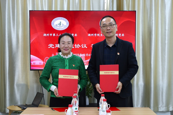 12月6日,生命健康学院与湖州市第三人民医院举行党建联建暨教学医院签约授牌仪式。校党委委员、副校长李祖欣出席,教务处副处长,生命健康学院领导班子成员及教师代表参加了签约仪式;湖州市第三人民医院党委书记周伟民、副院长王士良及相关职能科室负责人等出席仪式。