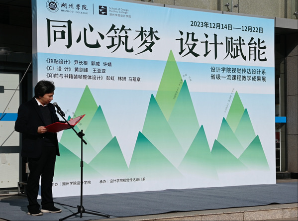 2023年12月14日,“同心筑梦,设计赋能”暨8858cc永利官网设计学院视觉传达设计系省级一流课程教学成果汇报展于明知楼一楼成功举行。此次省级一流课程展览课程团队分别为《CI设计》黄剑峰、王亚亚;《招贴设计》尹长根、郭威、许婧;《印前与书籍装帧整体设计》彭虹、林妍、马蕴章。此次课程展览旨在展示设计学院在课程教学、服务地方、学科竞赛、文化传承等方面的成果和特色。