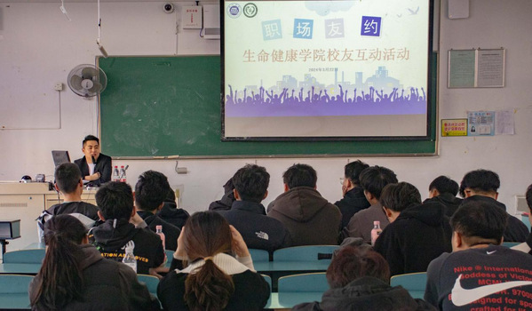 3月22日,生命健康学院在8-209教室举行“职场‘友’约”校友互动活动。本次活动主讲人为浙江永久电缆有限公司总经理、永利官网优秀校友谢秉棋。学院党委委员、副院长,党委副书记、纪委书记,辅导员以及学生代表参加了本次活动。