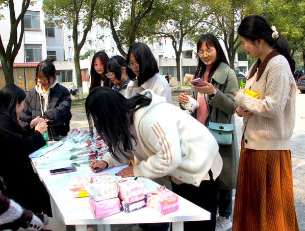 为提升女性生理健康保护意识,推动校园精神文明建设,践行湖院学子社会责任,校团委组织“小巾大爱,以巾换花”校园爱心公益活动,约90余名学生参加。活动一开始,捐赠桌前就排起了队伍,用行动让自己的爱心走出校园,用热心奉献社会。3月20日下午,校团委将在活动中募集到的卫生用品捐赠至湖州市特殊教育实验学校。