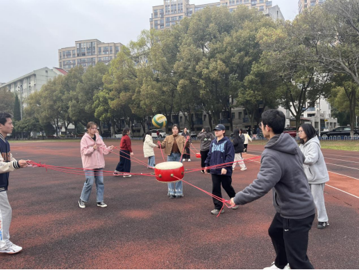 活动伊始,主持人以团辅游戏—“爱的抱抱”和“同心鼓”瞬间拉近了同学们之间的距离。在“同心鼓”游戏中,队员们相互配合、齐心协力将球颠起,在竞技中展现团队力量,在趣味中“鼓”出比赛的精彩。