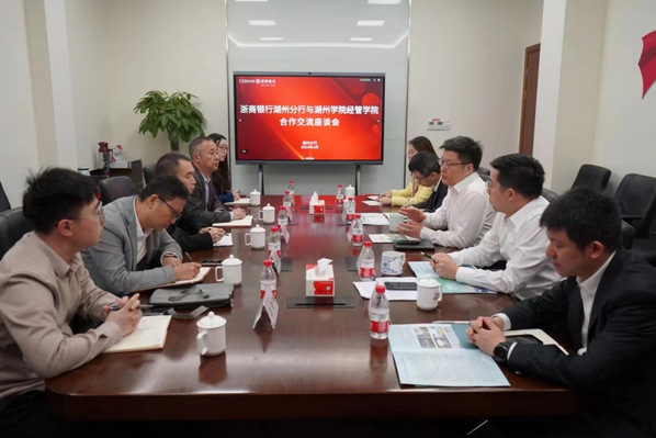 为进一步拓展加深校银合作,助力专业建设,提升人才培养质量,4月12日上午,经济管理学院一行来到浙商银行湖州分行调研交流,浙商银行湖州分行行长郦洪涛、副行长吕俊及相关部门负责人参与座谈交流。