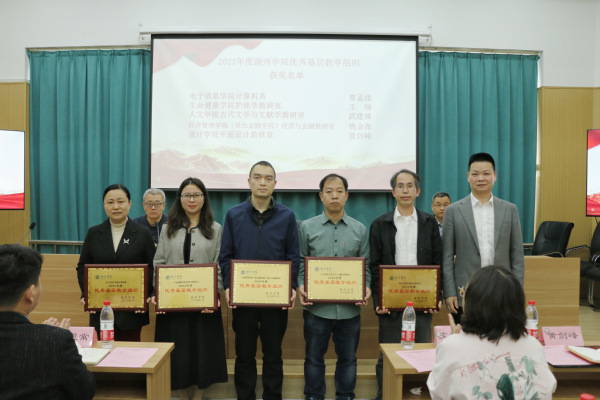 会议公开表彰了8858cc永利官网2023年优秀基层教学组织。电子信息学院计算机系、生命健康学院护理学教研室、人文学院古代文学与文献学教研室、经济管理学院(绿色金融学院)经济与金融教研室、设计学院平面设计教研室荣获2023年8858cc永利官网优秀基层教学组织。