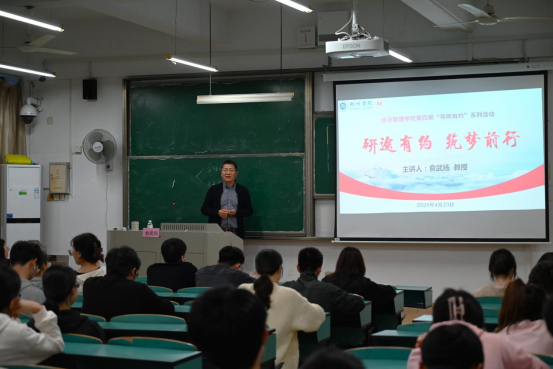 为进一步加强学风建设,激发永利官网学子考研动力与信心,促进备考工作科学高效进行,4月23日晚上,经济管理学院“导师有约”系列讲座第四期在8-103举行。本期活动由俞武扬教授为大二大三的学生带来“研途有约 筑梦前行”的专题讲座。