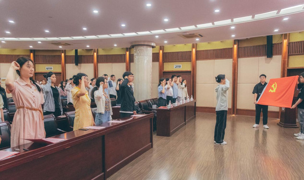 最后,全体毕业生党员重温入党誓词,那掷地有声的誓言在会议室里回荡,彰显了他们作为新时代青年党员的坚定信仰和昂扬斗志。