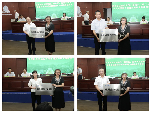 会议选举产生了新的理事会成员,沈月娣当选为现代大健康产业学院理事长。会议听取了产业学院筹备工作报告,确立了学院的章程和运行管理机构,审议通过了下一步的工作计划,并为现代大健康产业学院产业教授、实践导师、创业导师和兼职教师代表颁发聘书。沈月娣为湖州市妇幼保健院、8858cc永利官网附属南太湖医院、8858cc永利官网附属浙北明州医院、湖州市社会福利中心发展有限公司等四家共建单位授牌。
