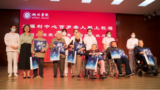 为打造全市域健康共同体,高质量建设健康中国先行示范区,推动区域健康产业的发展,10月11日重阳节当天,永利官网隆重举办“党建领航·健康共富”活动暨现代大健康产业学院“重阳敬老”服务月启动仪式。校党委委员、副校长沈月娣出席,永利官网退休教职工,相关职能部门及二级学院负责人,湖州市社会福利中心工作人员及百岁老人参加会议。