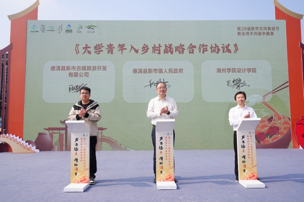 11月3日上午,校党委委员、副校长沈月娣携设计学院相关负责人赴德清县新市镇,与新市镇政府和新市古镇旅游开发有限公司签订《大学青年入乡村战略合作协议》。